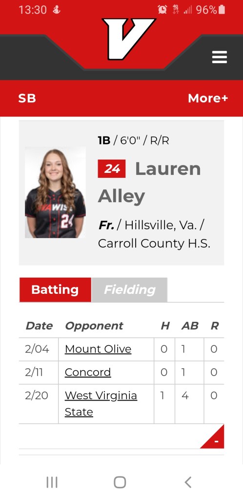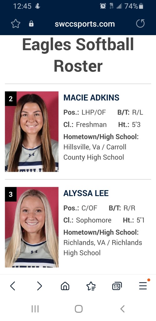 Southwest Virginia CC ( Macie Adkins) and UVA-WISE ( Lauren Alley) both wrapped up their regular seasons.