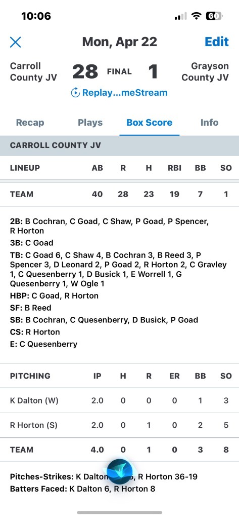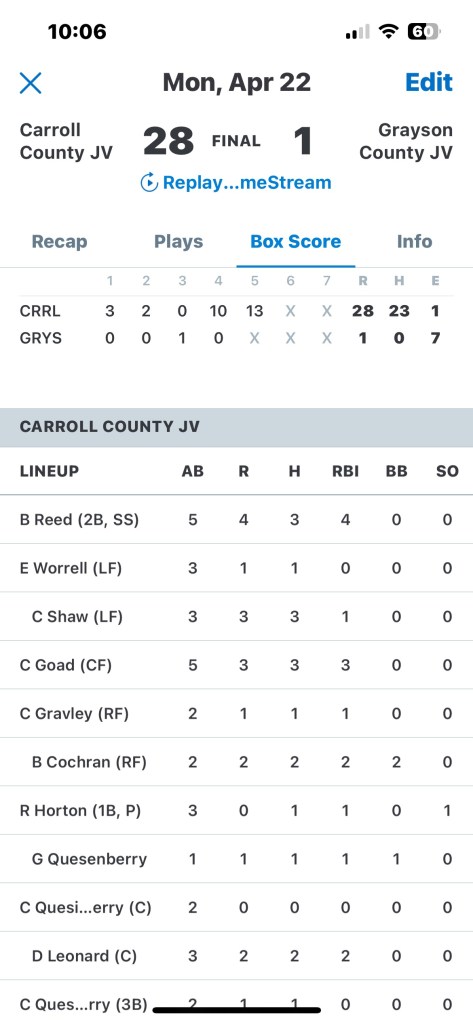 Girls 4 x 100 RelayΒ 2ndΒ 1:01.58Β (Paige Ogle, Raylin Watson, Alea Quesinberry, Autumn Ashton)
