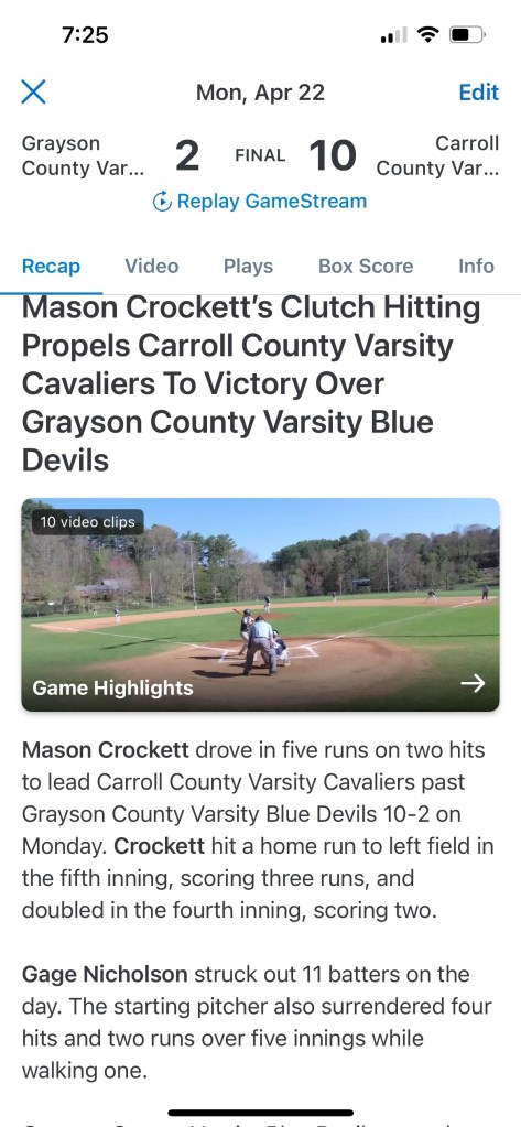 Boys 400 : Carter RichardsonΒ 12thΒ 1:19.23Hunter LineberryΒ 13thΒ Β 1:31.69