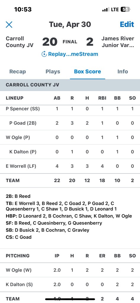 (Elias Sample, Brayden Smoot, Noah Manning, Davis Reitzel)