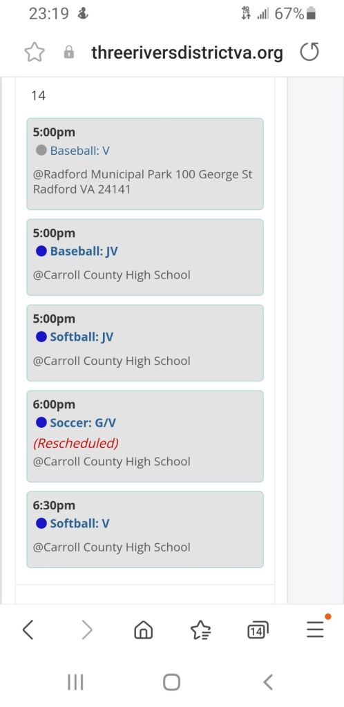 Mother Nature might play a role in when the games are going to be played. The schedule as of now is to host Radford on Tuesday and James River on Thursday, weather permitting.