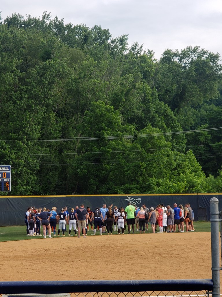 First Pitch followed the opening prayer and the game began at 3:30. Katherine Lindamood started at 1st Base for the East squad and Emma Leath will be one of the pitchers.