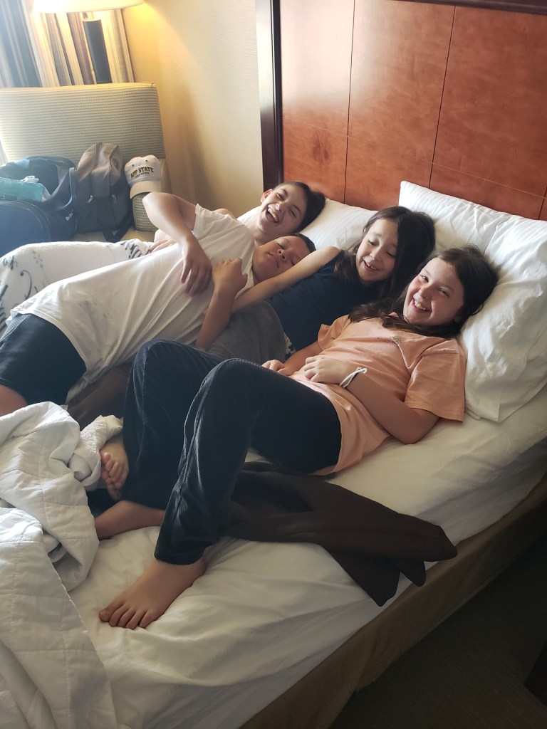 The young Lady π© in the middle of this photo π· is one of the ball players that might be up past her normal bedtime π tonight.