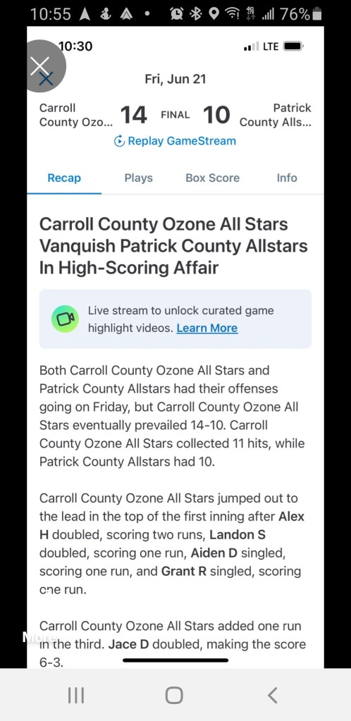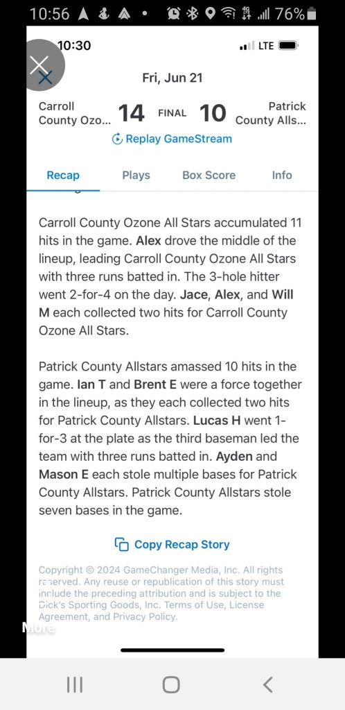 We are back in Grayson today for the Dixie tournament. Carroll County is 1 win away from going to the Dixie State Championship. The game with Galax is going to begin momentarily