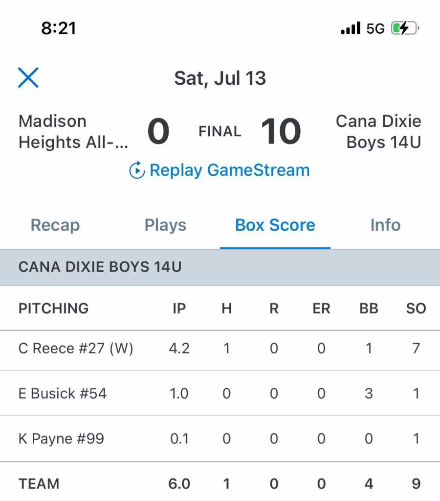 ” We play tomorrow at 1 pm. I’m not sure of our opponent yet.”
