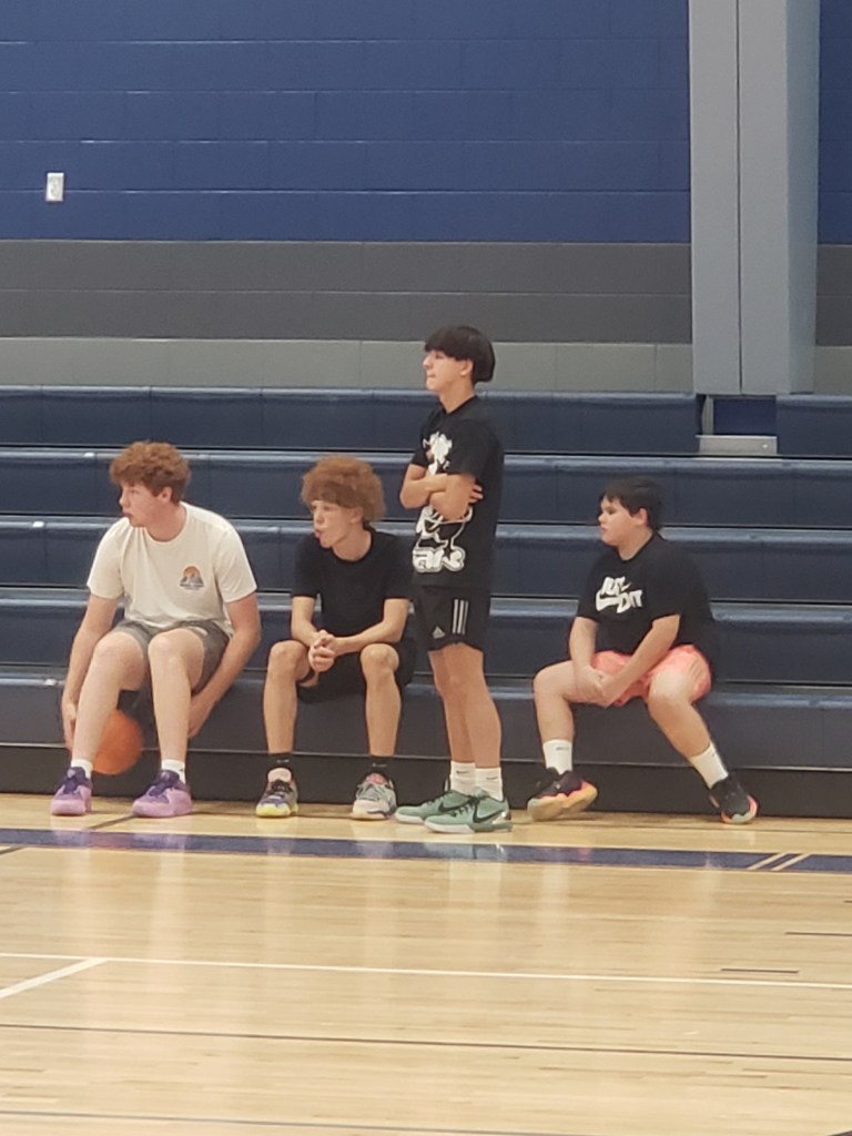 Junior Varsity Head Coach Jason Stockner is in charge over in the New building while Barnes is running things in the Main Gym.