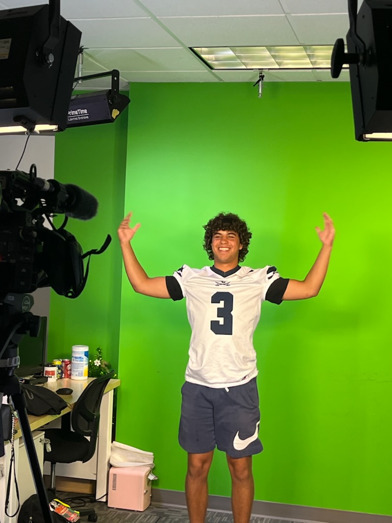 Seth Greer being interviewed by Jermaine Ferrell at WFXR for Friday Night Blitz media day.
