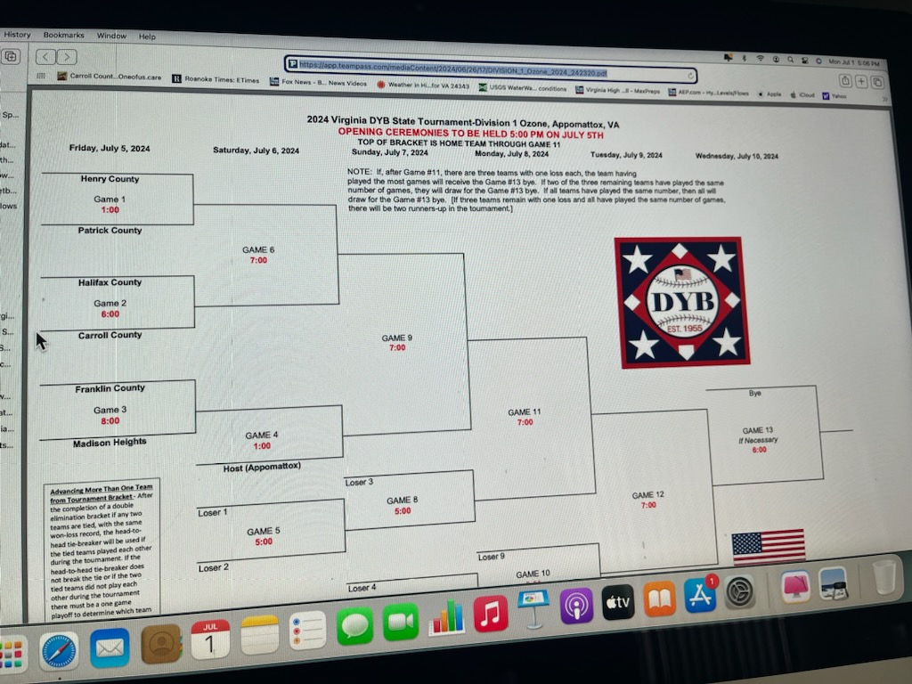 Appomattox is the host team and received a bye in the opening round in the double elimination event. When Carroll County takes the field the second time will depend upon the results from their opener.