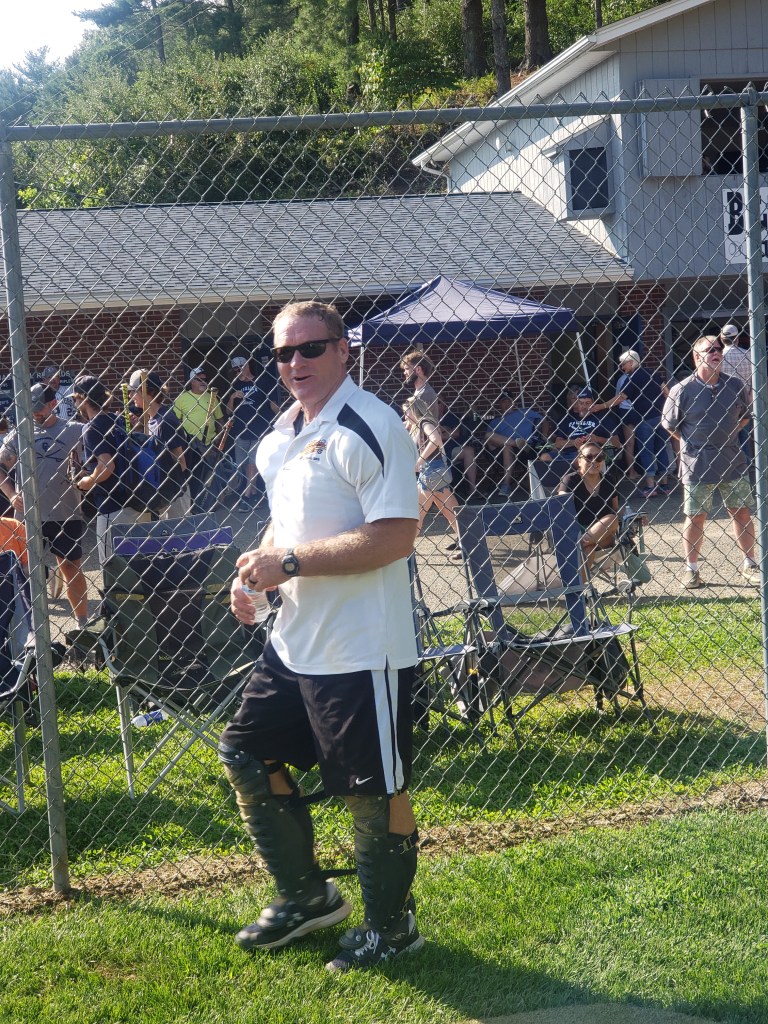 This picture π· looks just like the scene in Field of Dreams when Ray’s Dad π¨ removes his mask. Pretty sure that Coach Nester shed a few pounds π· while umpiring.