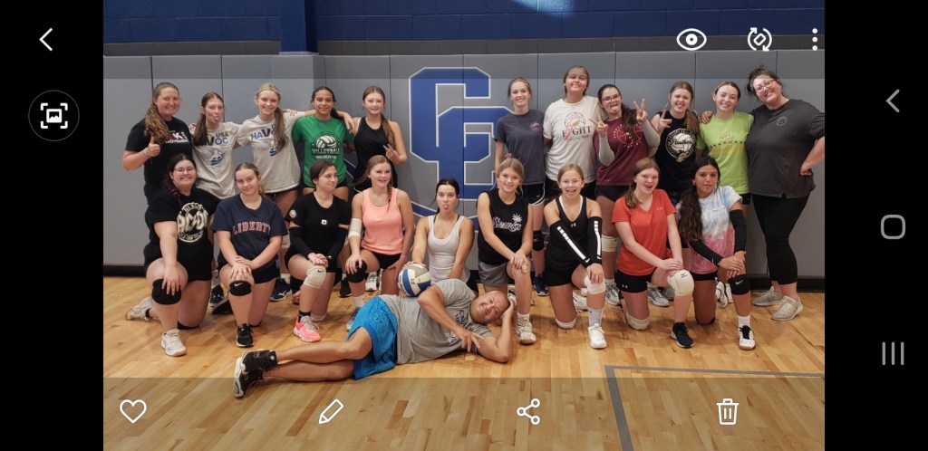Today I had the privilege of meeting Bowman Ayers. Bowman pitched in to our efforts by letting Velvet Creed Leonard stand in the back of his Pick-up truck 🚚 with her camera 📷 as she tried to frame up the shot while the Volleyball 🏐 team finished up their practice.