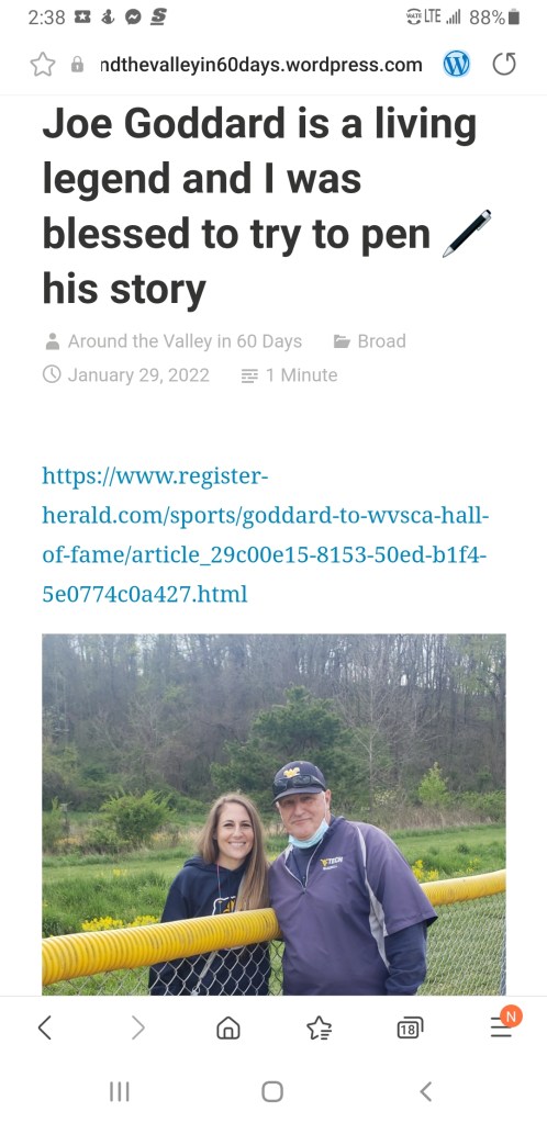 Third, the man π¨ I proudly introduce at our West Virginia Tech Golden Bears π» Baseball games βΎοΈ as the Legendary Joe Goddard. Goddard is from Independence High School outside Beckley, WV. Joe spent nearly 40 years at the School and literally Built the Field that has his name on it.