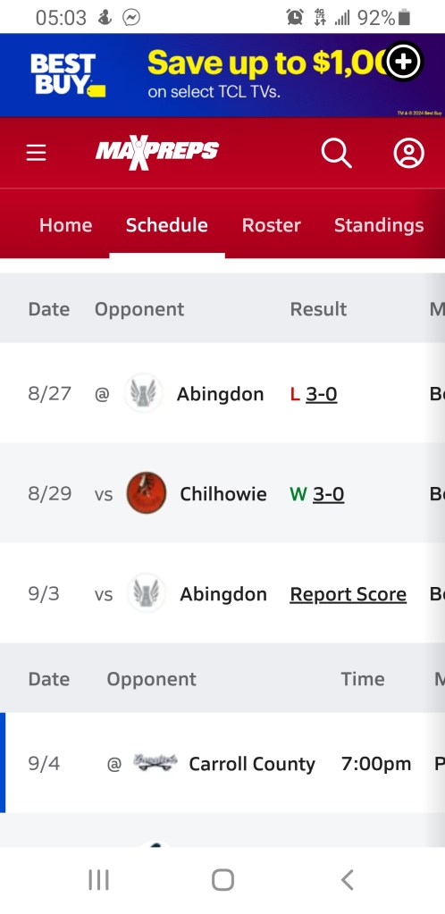 Marion High School π« will be the opposing team tonight and should be playing their fourth match of the season. The Scarlett Hurricanes π carried a 1-1 record into a rematch with Abingdon last night.
