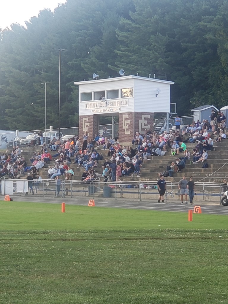 Great opening as the Middle School Chorus packed themselves into the Press Box and performed the National Anthem !