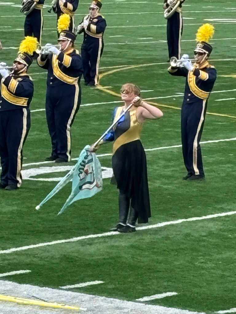 I know you like to follow our kids in their college careers. ( Yes, I do) Maddie Spencer is performing with the Emory & Henry marching band as a freshman color guard member. E&H had a win today against Bluefield State. 40-13.