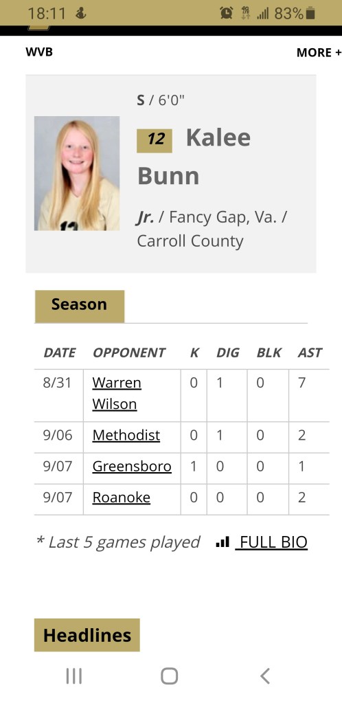 Ferrum (Kalee Bunn) Volleyball 🏐 is off until Tuesday…