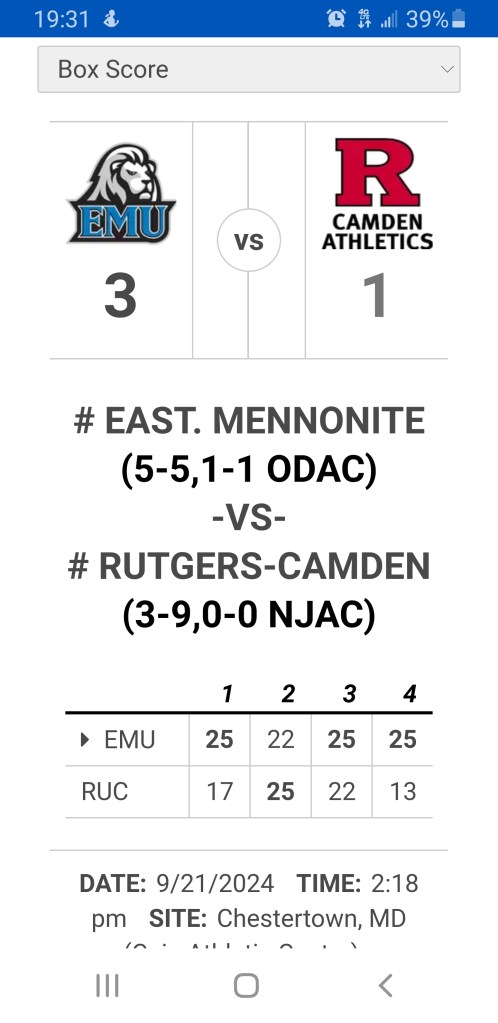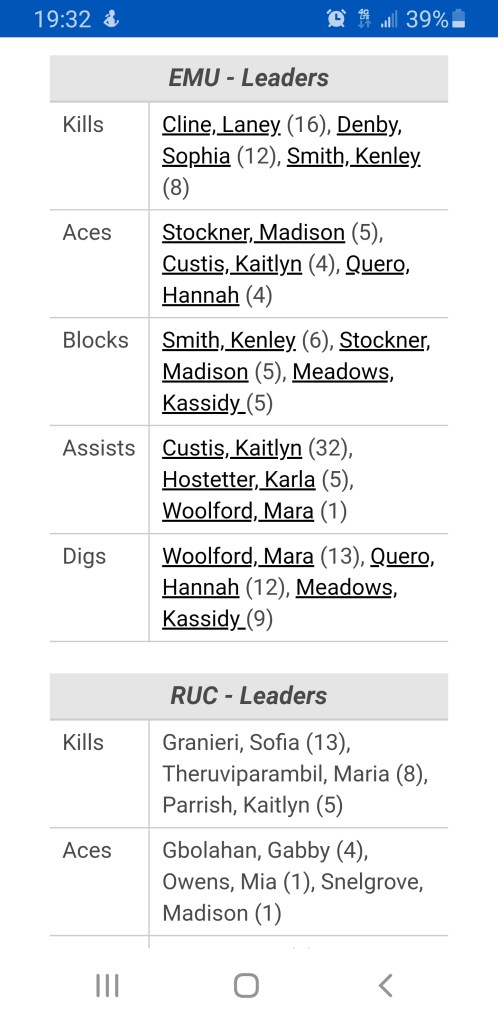 Madison Stockner and EMU defeated Rutgers – Camden and the Carroll County Alum finished with 5 Aces and 5 Blocks.