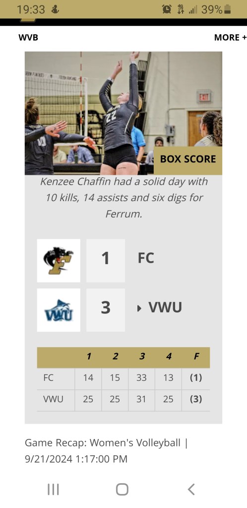 Ferrum pushed the match out to four sets by winning a thrilling 33-31 decision in Set #3.