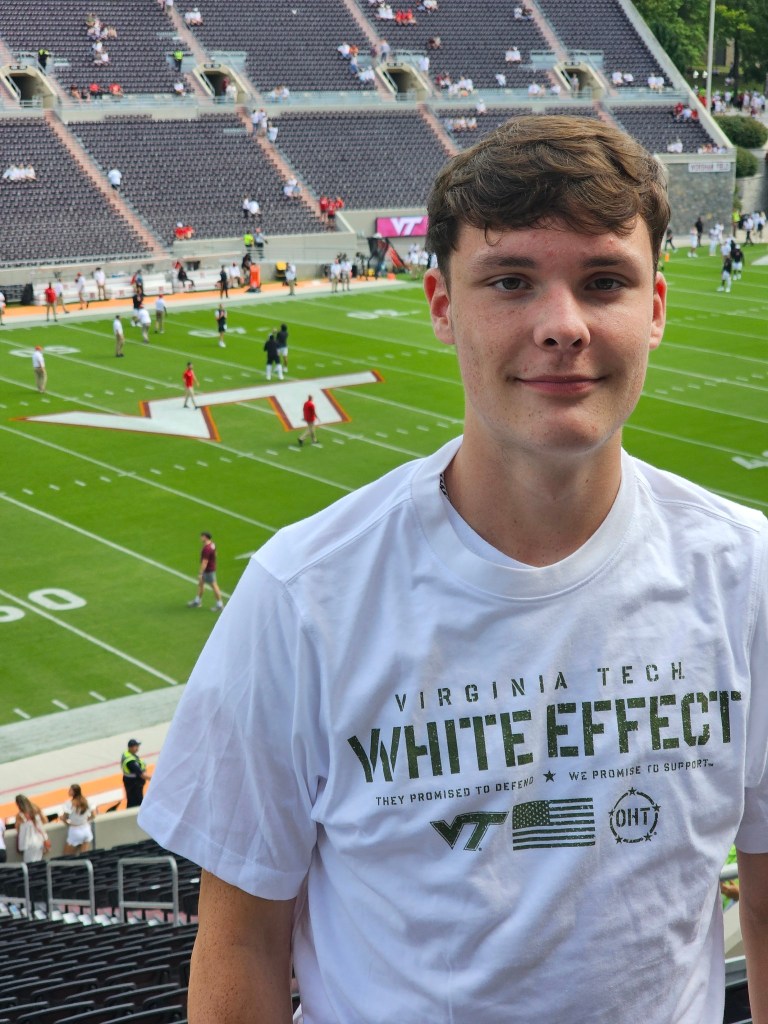 Macie Adkins is in her second and final year at the School while Jabin Talley is just starting his first. Talley, pictured at the Virginia Tech home football game played yesterday in Blacksburg, won’t return to Campus until this evening but Adkins will be playing some Fall Ball Softball today.