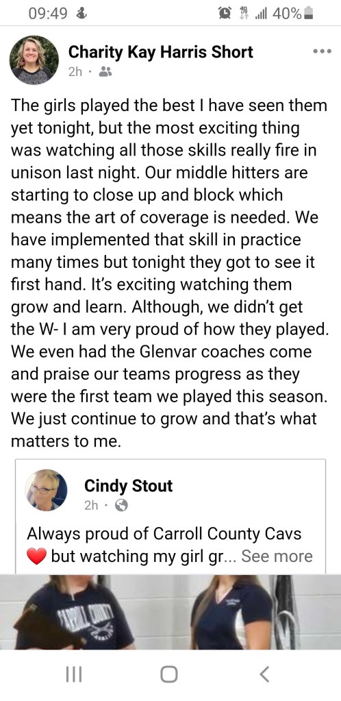 Glenvar – Our CCMS ladies brought it to the courts in Glenvar! They played very excited and energetic in the first set. It was fun to watch, as they played and cheered with, and for one anotherβ₯οΈ They took the lead early in the set, but took the loss 25-17. They went on to lose the second set 25-9. These Ladies may not have gotten the win, but they definitely showed how a Team should operate! A big thank you to Coach K and Coach Sarah Alderman. Your efforts are Paying Off. Proud to be a CCMS CAVALIER!!!