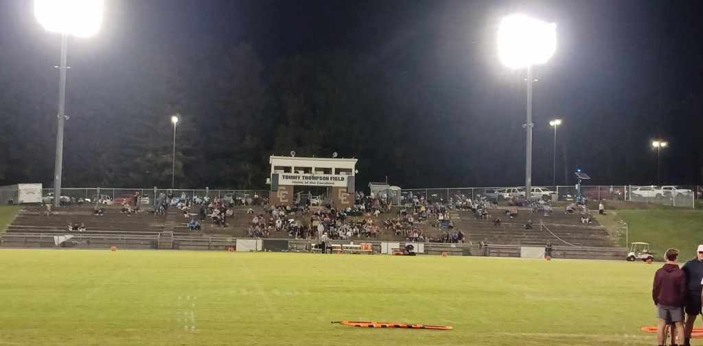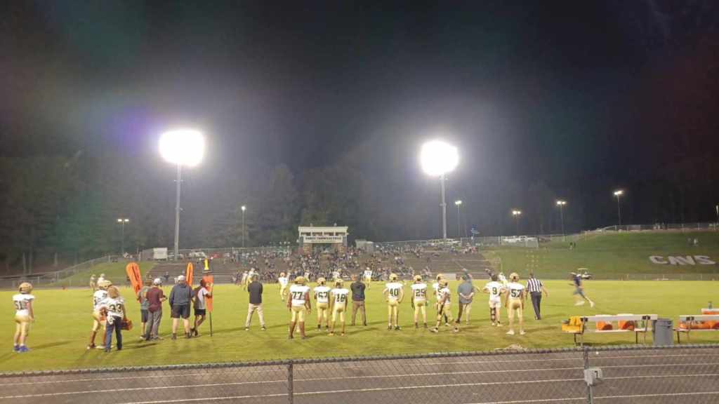 Half time with Cavaliers leading 14-7. Perfect football weather under the Wednesday night lights at Tommy Thompson Field.