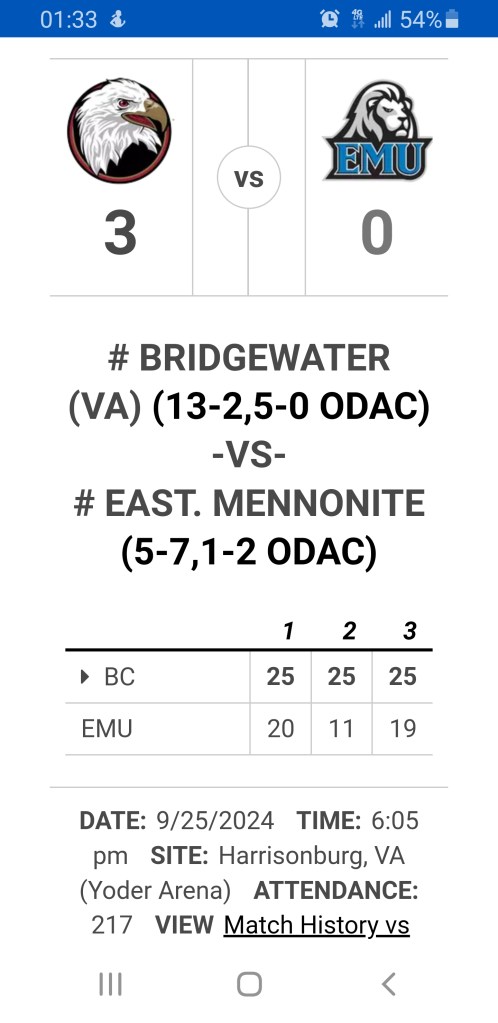 7:44 – Averett closes out Ferrum Volleyball, Love the atmosphere here tonight.
