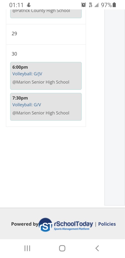 Carroll County High School π« Junior Varsity and Varsity Volleyball π were the only thing on the Cavalier Sports Docket for Monday. That match is now on hold until the good folks over in Marion see if this School and town are going to be functional anytime soon.