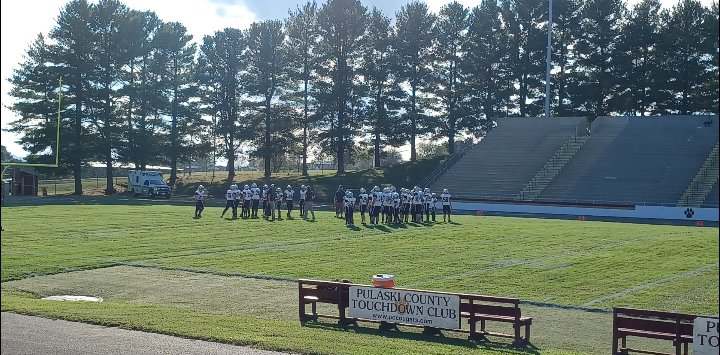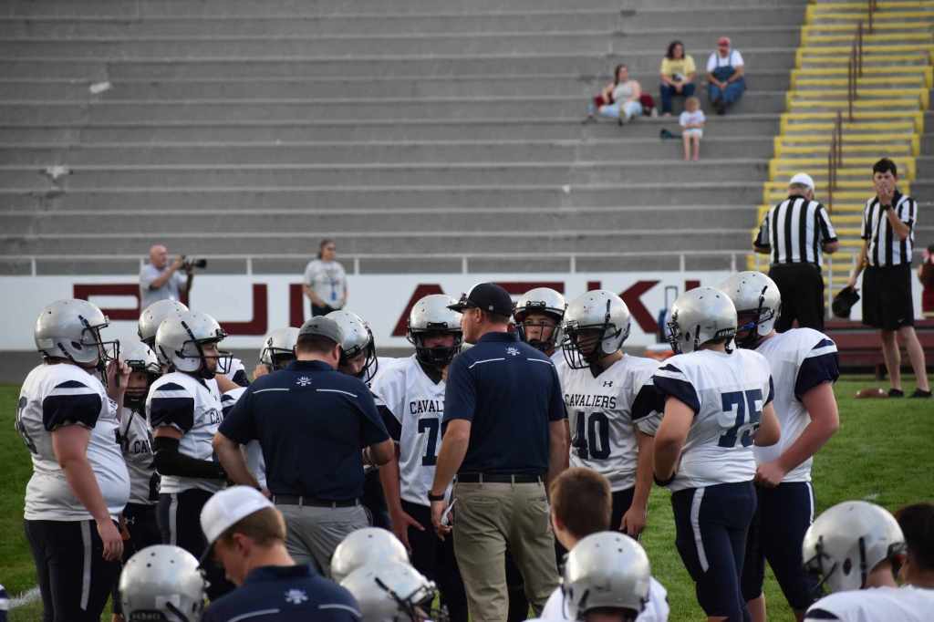 Halftime brings the young Cavaliers a breather and some time with Coach Largen to regroup after a tremendous first half with the Pulaski Cougars controlling the scoreboard, 22-0. Keep your head and heart in the game fellas!