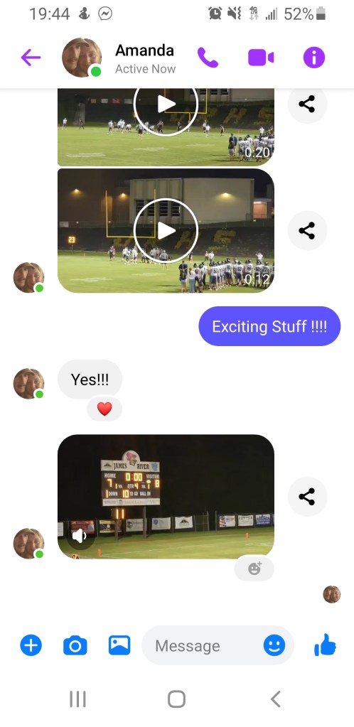 Over in James River, with 0:37 remaining, Cavaliers score TD & convert 2 point attempt, leading 8-7!!!!!