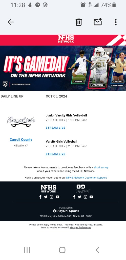 1:30 pm – Gate City 26, Carroll County 24…. Great opening set….