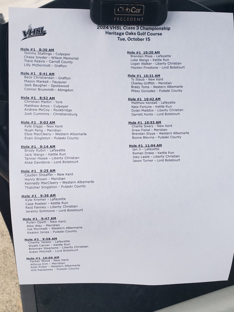 First Note 📝 – not a Shot Gun start. Fifteen groups of four and Trace is in the opening foursome.
