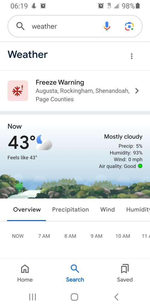 Harrisonburg – The temperature 🌡 on the dash reads 46° but the good news is that there’s no wind right now.