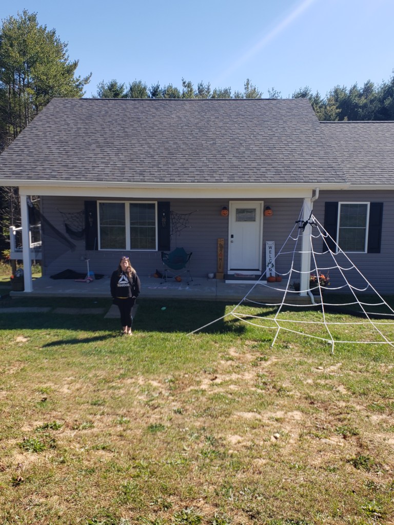 Pictured here is Katelyn Nester standing π§ββοΈin front of her Home on Coon Ridge, north of Hillsville, Virginia.