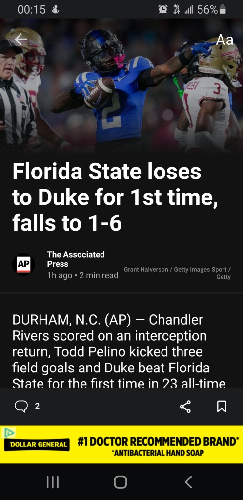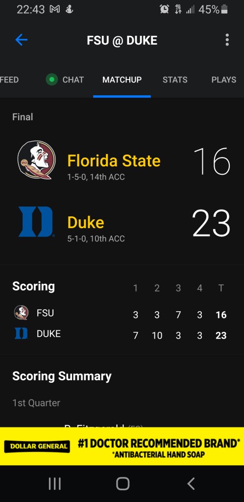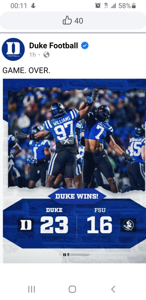 Item #2 – I know that there are many, many diehard Hokie fans out there so let’s acknowledge their biggest Win of the season last night π.