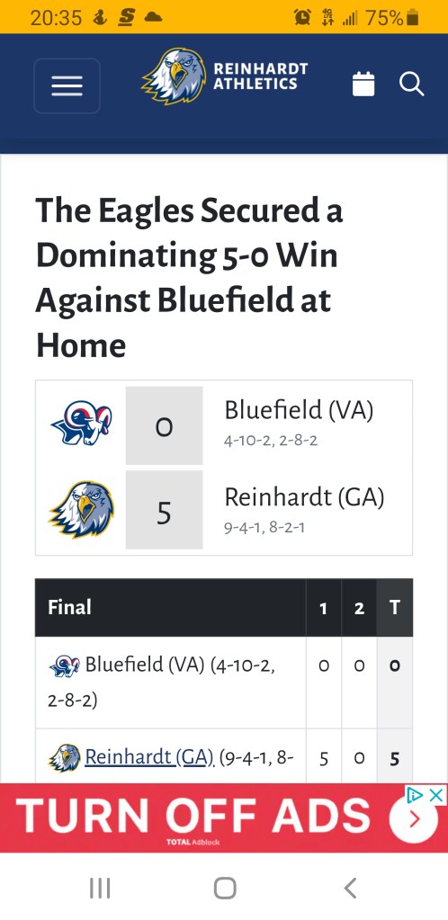 Bluefield Soccer ( KK Newman) fell on the road at Reinhardt University, 5-0.
