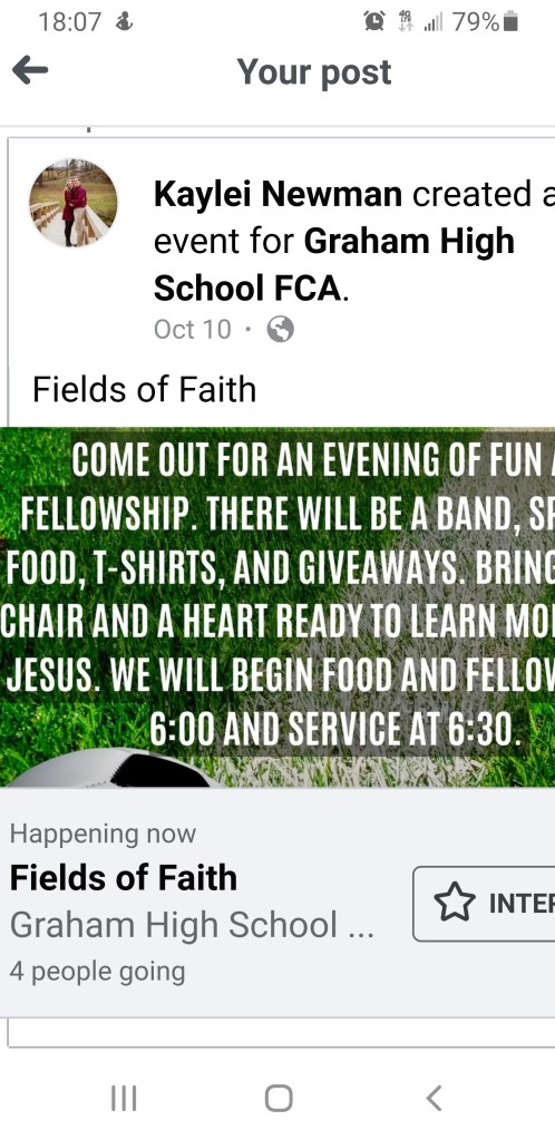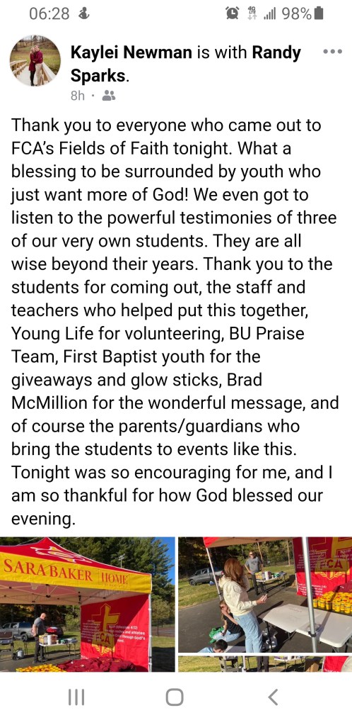 Now, that was the road to Graham so now we can focus on the event at Graham. The Fellowship of Christian Athletes βοΈ is a group that is near and dear to me. From Mitch Reed on down the list, they are doing God’s Work π.