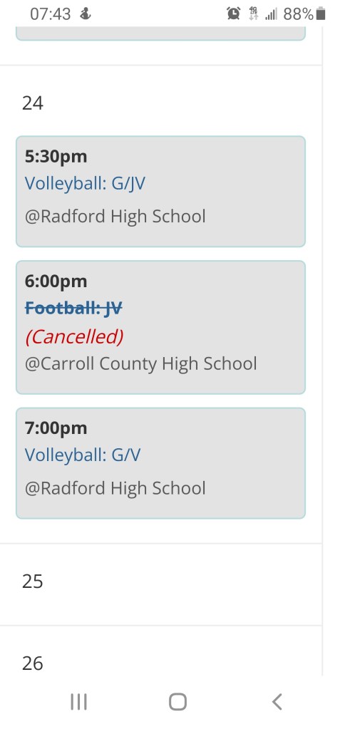 The Junior Varsity Football team was able to add an opponent back for tonight after originally showing their final two games as canceled. This will give the team an opportunity to bounce back after suffering their first setback of the season at Floyd County.