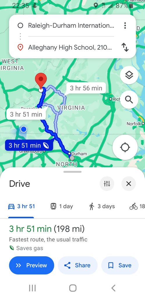 Once Lin is all set, I will then punch Alleghany High School π« into my GPS.