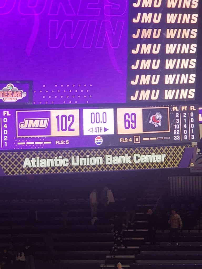 James Madison University is rolling along now, 77-47 (1:16-3)