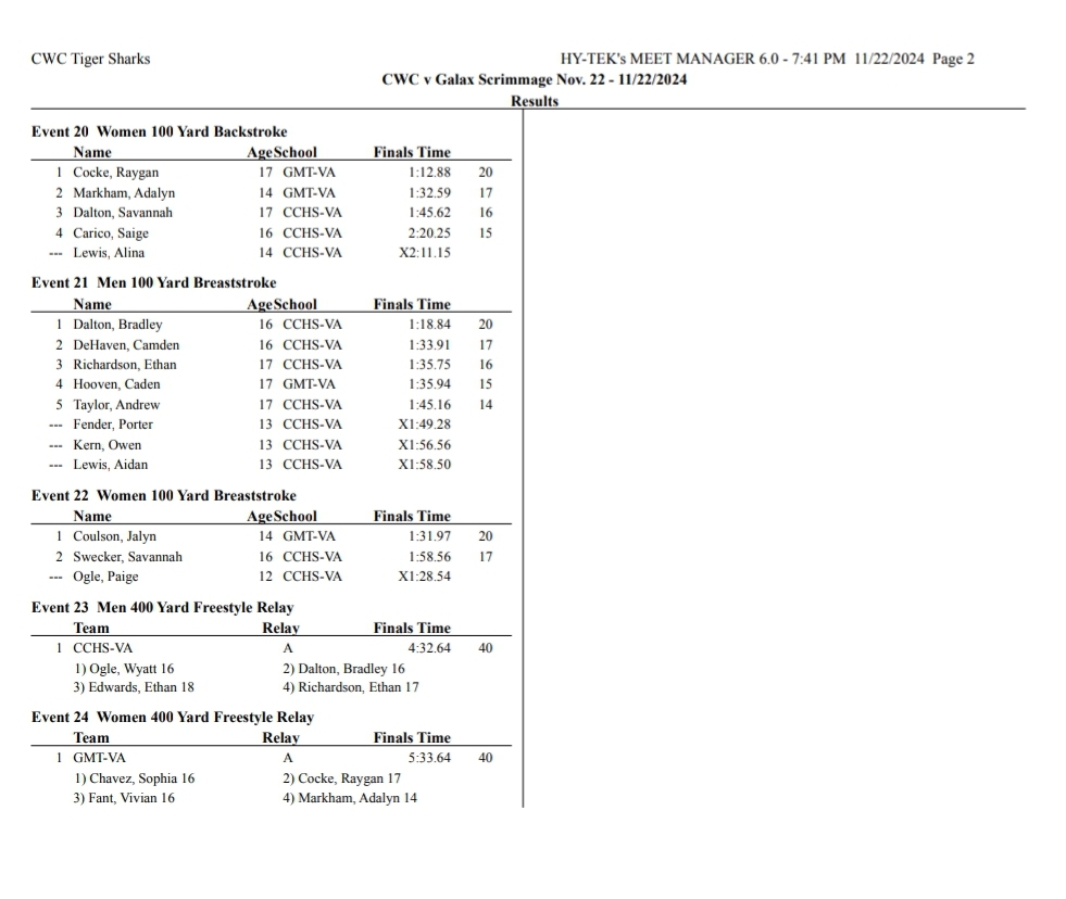 The Middle School π« swimmers are included on the results. The X by their times indicates that they are an exhibition swimmer.
