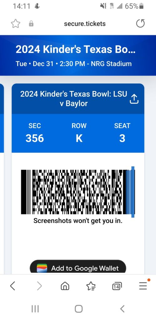 Back to today, LSU is playing like their lives depend upon winning. They are currently leading Baylor 28-7, mid second quarter.