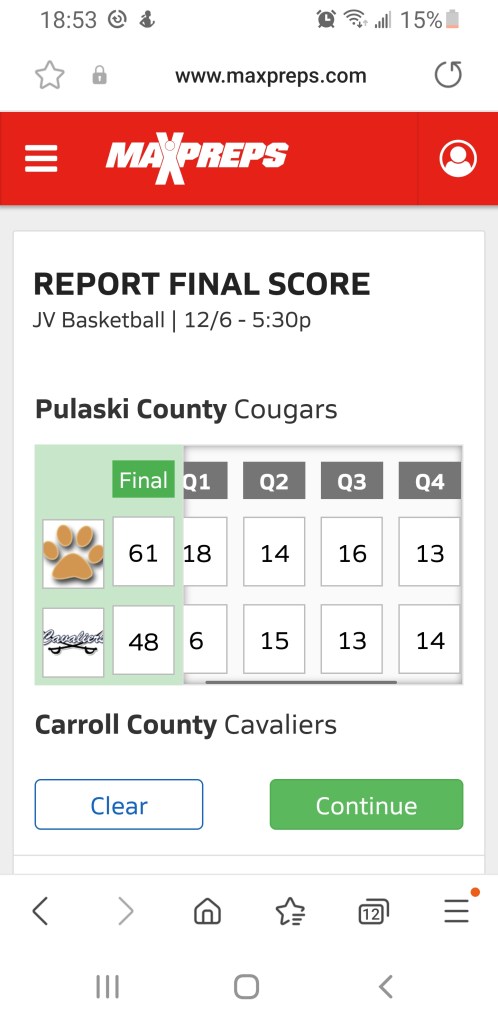 END of 3rd – Pulaski County 48, Carroll County 34. Cougs take the 3rd quarter, 16-13.