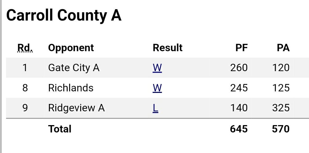 Carroll B had a good finals round, winning two and losing two. They finished 11th overall.