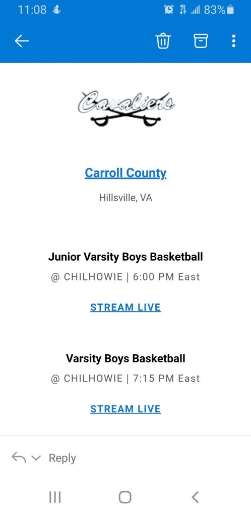 Β Later today both Jason Stockner and Anthony Barnes will take their squads into road games at Chilhowie High School π«. It’s the only two contests on the Cavalier Calendar for the day.