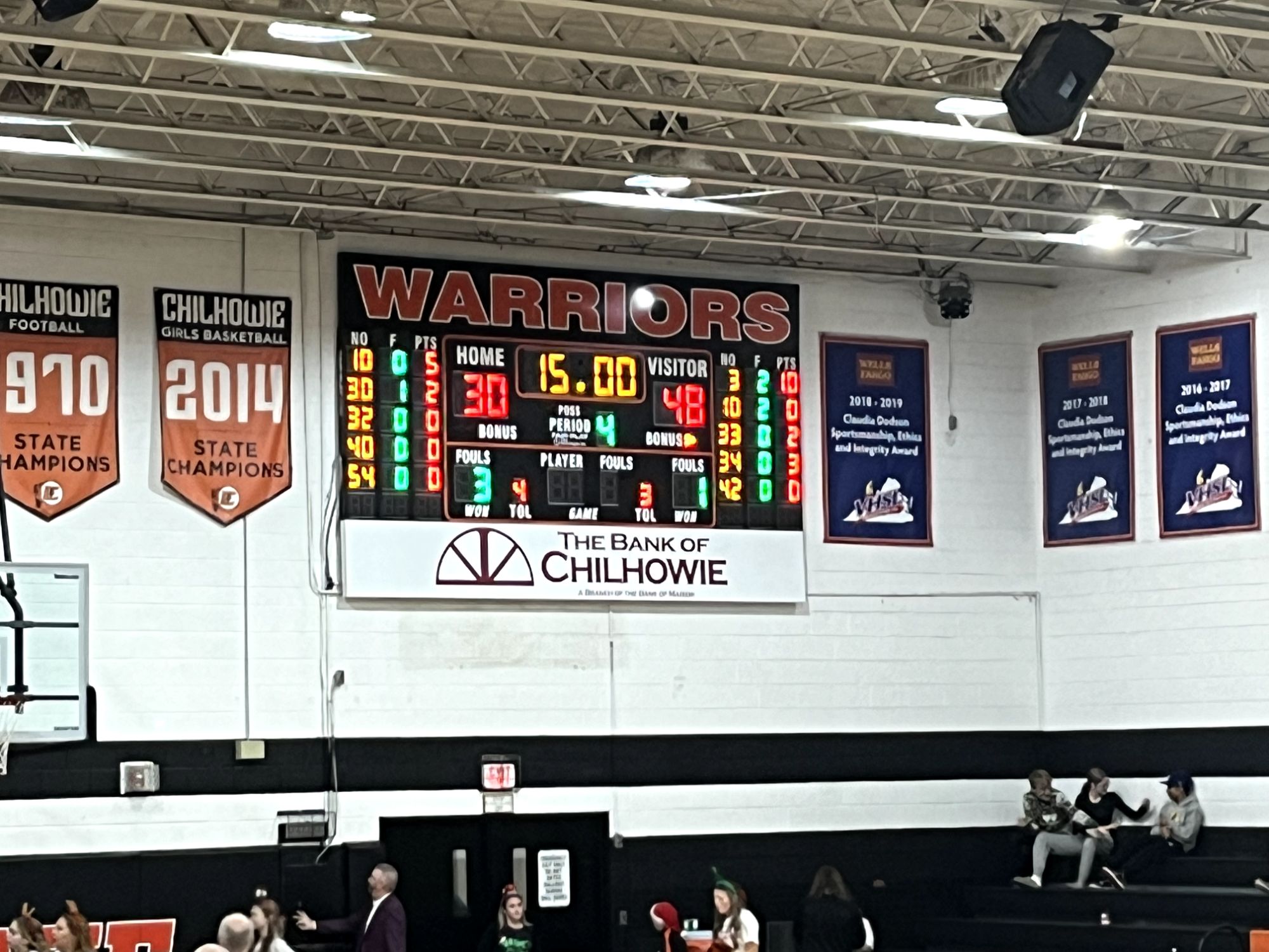 ” Welcome to Chilhowie gym, been around since the 40’s they call it the hot box , old balcony and all, we felt like this would be tough with environment and with their center which is 6-7,” Head Coach Anthony Barnes said. ” We started out slow again and finally started getting to rim and into transition,Β Bryce carried us the first half keeping us in it . Then the foul trouble got him, then Cody really had a great game playing physically and smart all in one , he gave us some great put backs around the rim, and then Ethan caught fire finishing the game with 17, 4 3’s. “