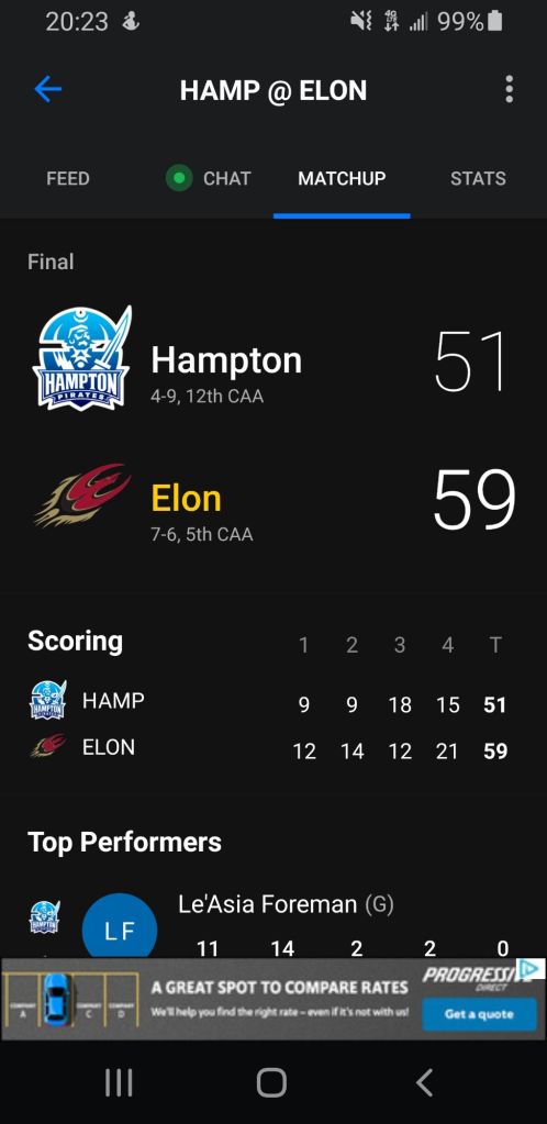 Alyssa Ervin (Freshman – Elon) recorded 15 minutes of playing time Friday night as the Phoenix hosted Hampton. Six points on three of four shooting β one assist, one rebound and one steal was the line score for the 5’11 Ervin.