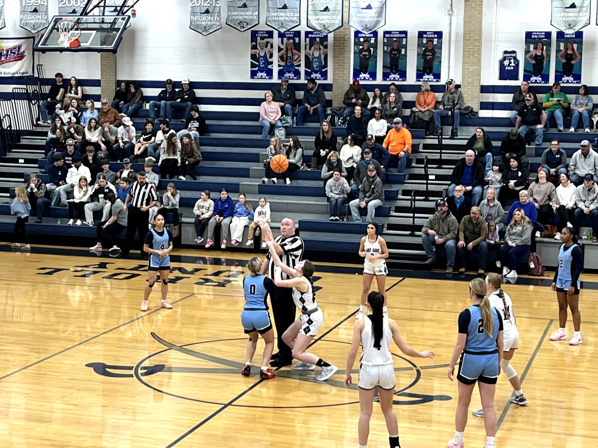 Fast Forward to Friday night and three minutes into the game AHS was leading 11-2, making it easy to think, here we go again. Raylee Goins (8 points) hit a jumper to slow π the roll and CC Mitchell (9 points) connected on the first of three from behind the arc. At the end of the first quarter the deficit was down to 16-11.