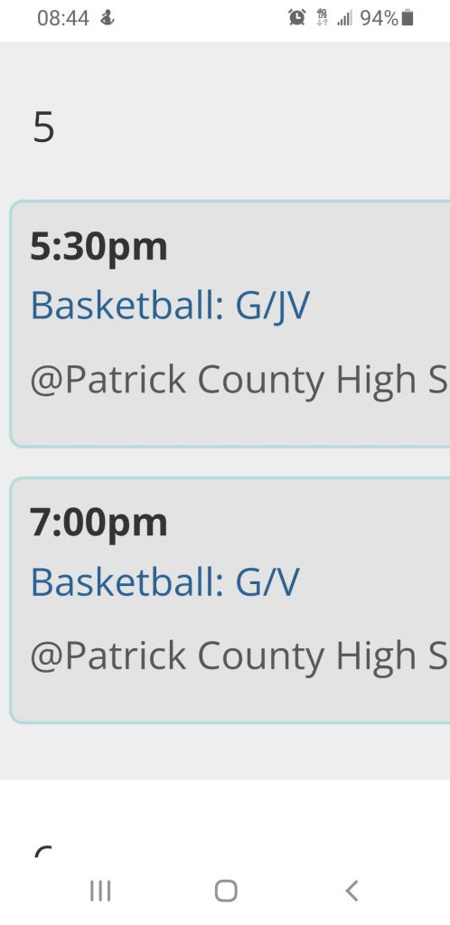 Wednesday has our Girls playing over in Patrick County tonight. It was nice to cross paths with Natalie Burress last night π and for her to say she was feeling better ahead of their game tonight. Both the Varsity and JV have been battling illnesses.