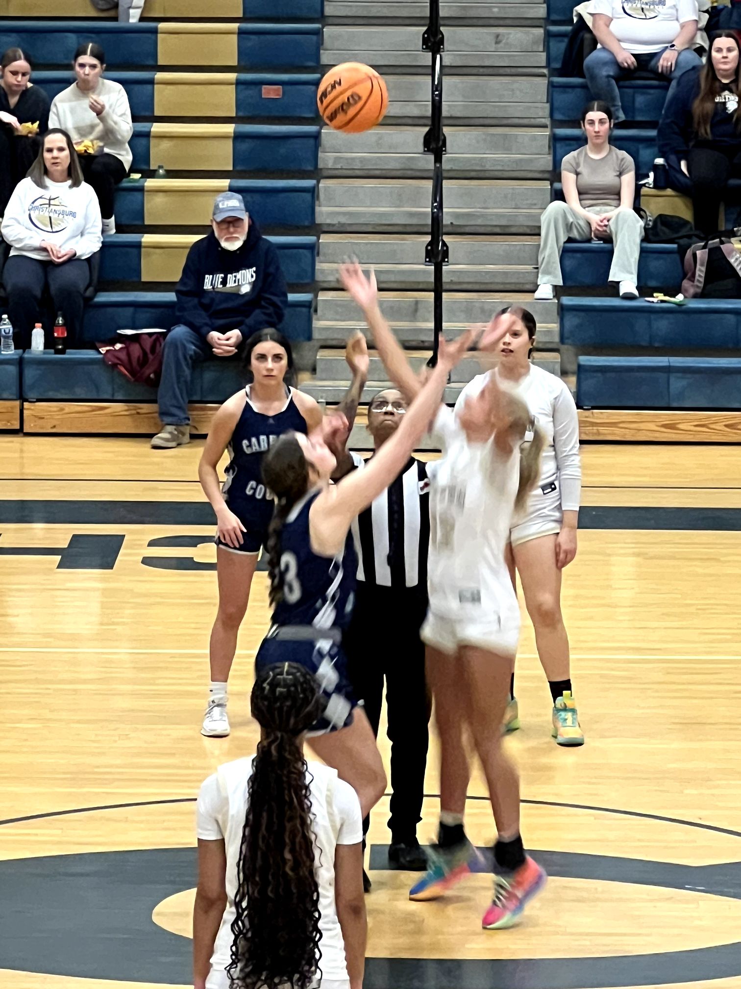 Carroll County led 20-14 after Callie Harris (12 points) kickstarted the offense with 6 pts and 4 assists early. Hoover netted 13 of her points in the second quarter and the Blue Demons closed out the half on a 15-4 run to lead 29-24 at the break.
