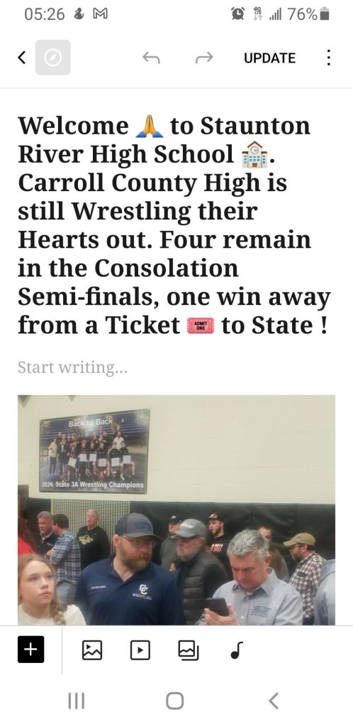 The first step πΆββοΈ in the process was to create a story for Carroll County High School Wrestling Coach West Long. The piece previewed his Regional tournament later in the day at Staunton River High School.