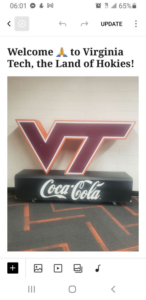 The next thing you know we are at Virginia Tech. The plan being to go inside and say Hello as a show of support to one of the folks that we are going to be honoring at our Banquet, Vickey Ritchie.